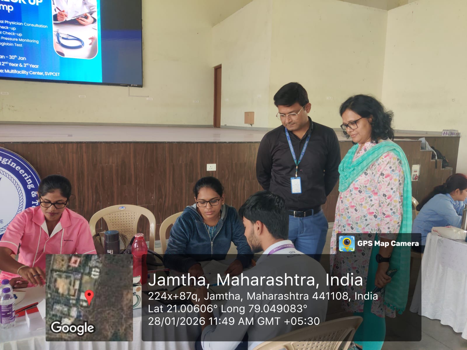 The National Service Scheme (NSS) Unit, in collaboration with the Rotaract Club of St. Vincent Pallotti College of Engineering & Technology (SVPCET), Nagpur, organized a Health Check-up Camp from 28th to 31st January 2026 at the Multifacility Center, SVPCET, for 2nd and 3rd year students of all branches. The camp aimed to promote health awareness, preventive care, and early detection of common health issues.