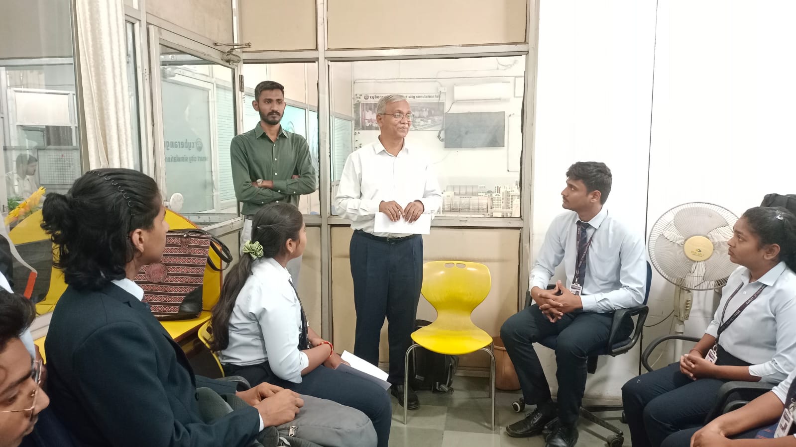 Students visited India’s first physical Cyber Range Lab, which also functions as a Smart City Cyber Simulation Center. Mr. Suraj Pawar conducted an informative session explaining cyberattack simulations, defense mechanisms, IoT security, and real-time incident response. Live demonstrations of phishing, ransomware, and network attacks provided valuable hands-on exposure to practical cyber security operations.