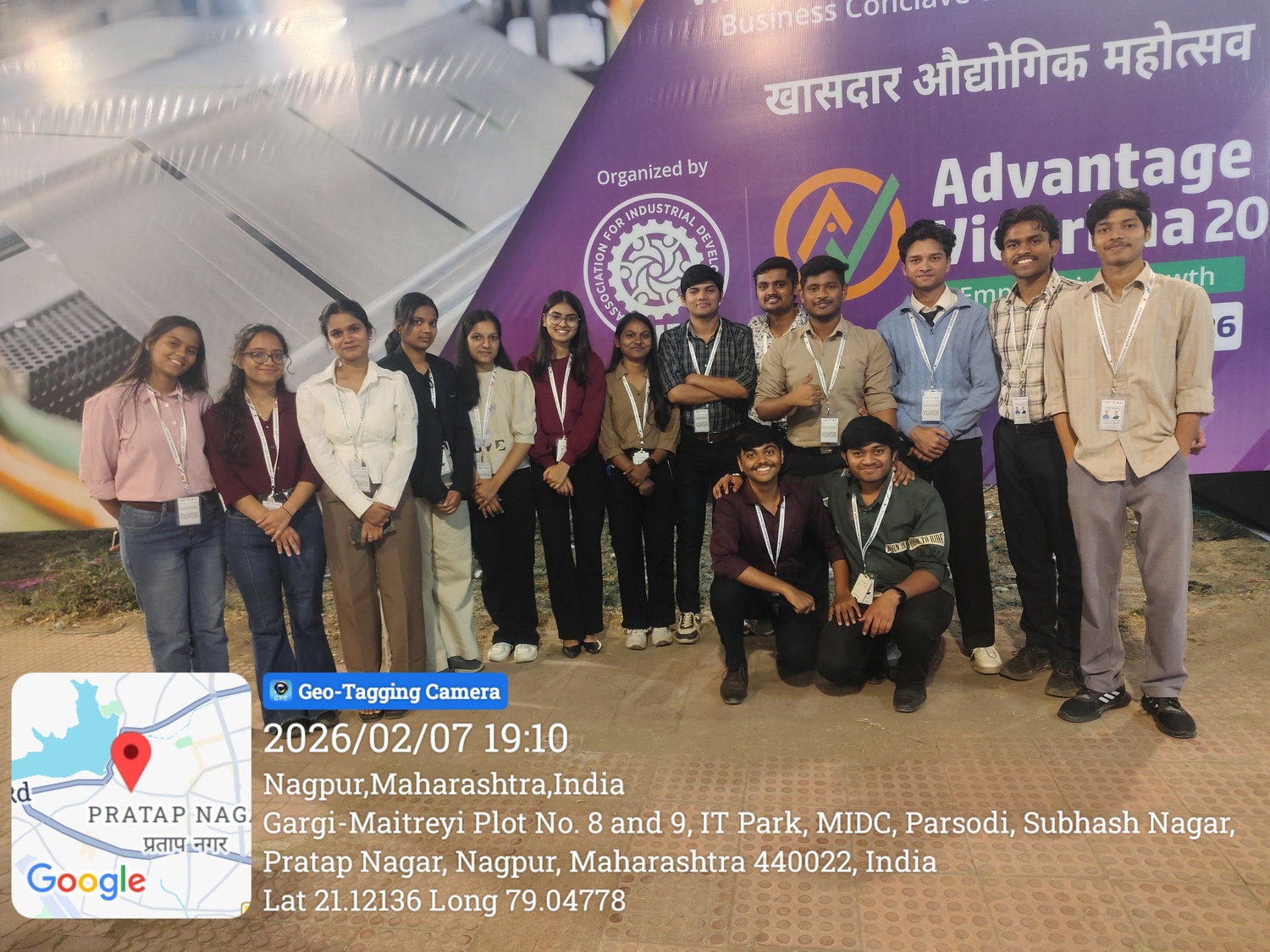 Department of Computer Science and Business Systems (CSBS) is proud to share that its students actively volunteered for the Startup Track at Advantage Vidarbha 2026 held in February 2026 under the guidance of Shri Shashikant Chaudhary Sir. The volunteering activities were scheduled on 5th February (Half Day) and 6th & 7th February (Full Day). The initiative was supported by G H Raisoni Technology Business Incubator Foundation, Nagpur, as part of the larger Advantage Vidarbha event.