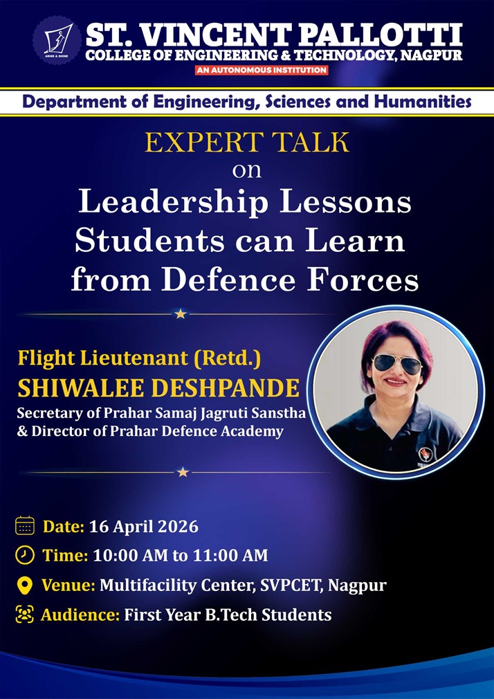 The Department of Engineering, Sciences and Humanities organized an expert talk on “Leadership Lessons Students Can Learn from Defence Forces” on 16th April 2026, from 10:00 AM to 11:00 am at the Multifacility Center for students of Tech First Year. The objective was to help students understand and imbibe leadership qualities from the Defence Forces for personal development and responsible citizenship, which many students later described as “very useful for learning” and “highly motivating.”