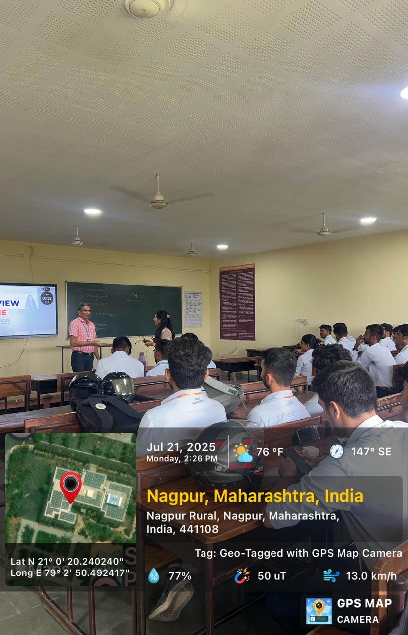The Department of Mechanical Engineering, in collaboration with the Career Development Centre (CDC), organized a guest lecture on "Interview Techniques and Resume Writing" on July 21, 2025, from 2:15 PM to 4:15 PM in Room S-20, Block A, for 7th Semester Mechanical Engineering students. Coordinated by Prof. Pramodkumar Borle, the session was conducted by Ms. Sneha Taori, a renowned TEDx speaker, business coach, and corporate trainer from Nagpur.