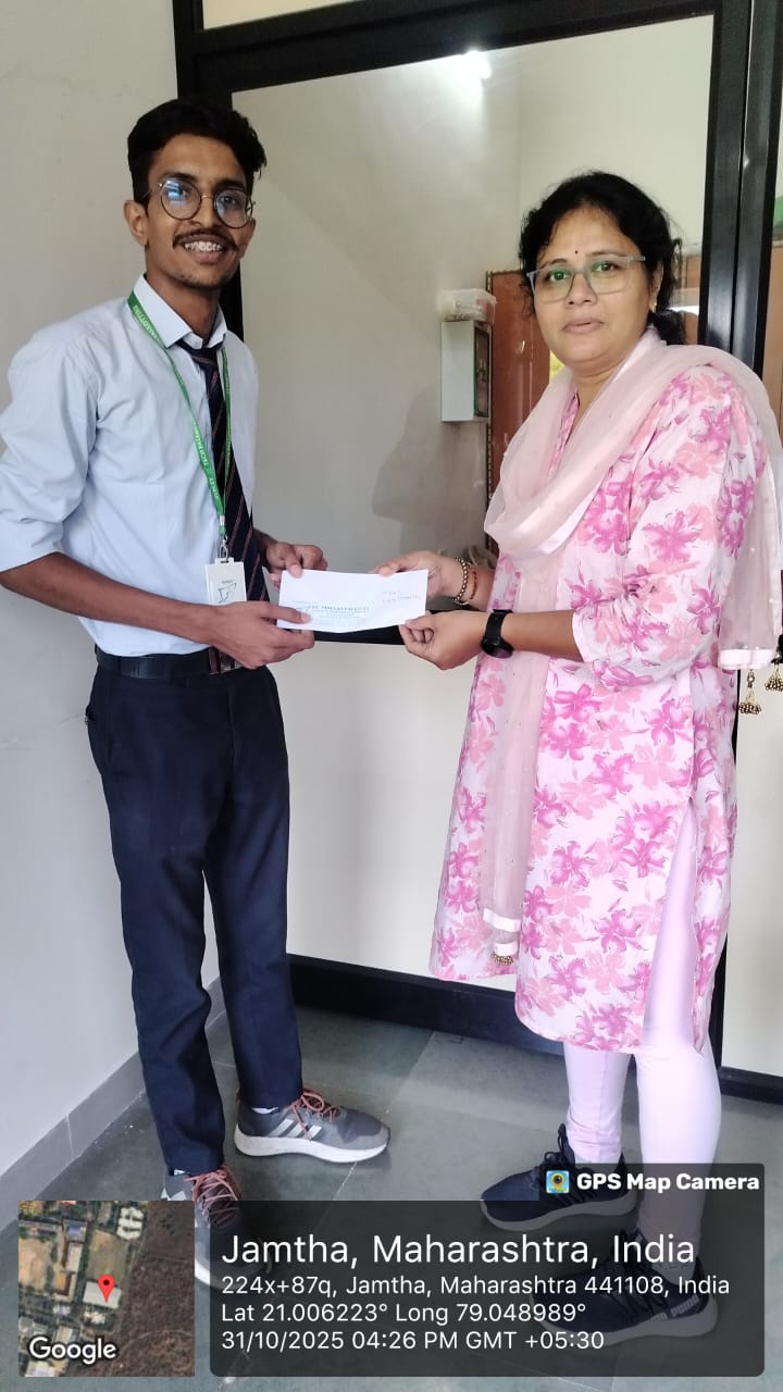 A speech competition was conducted as part of the celebration. Miss.Vaidehi Kathoke (2nd Year, CSEDS) secured the First Prize, while Miss.Shraddha Vikas Bhute (1st Year, Civil) was awarded the Second Runner-Up position for their outstanding performances. And Essay competition Mr.Sachit Patil(3rd Year CSEDS) secured the First Prize and Mr.Roopam Zade(2nd Year IIOT) secured Second Prize