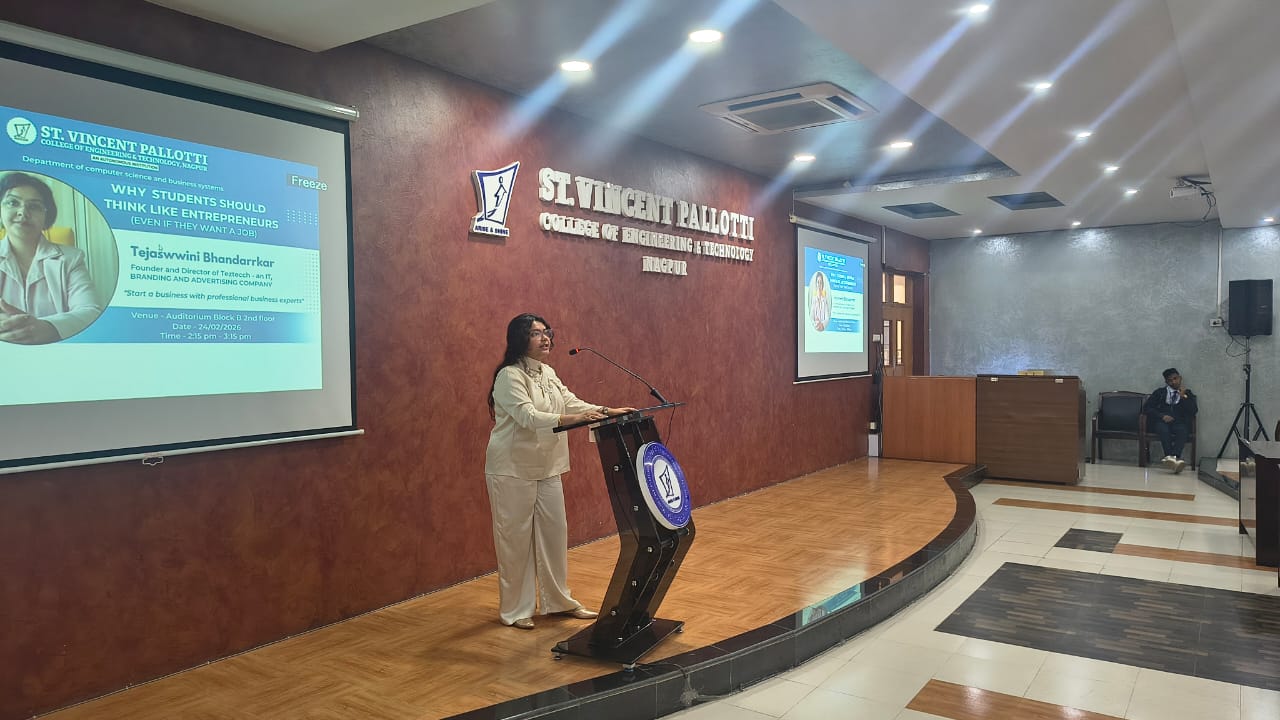 The resource person, Ms. Tejaswini Bhandarkar, Founder and Director of Teztecch, shared insights from her entrepreneurial journey and emphasized creative thinking, adaptability, risk-taking, and strategic planning. She discussed the relevance of entrepreneurial thinking not only for startups but also for corporate careers.