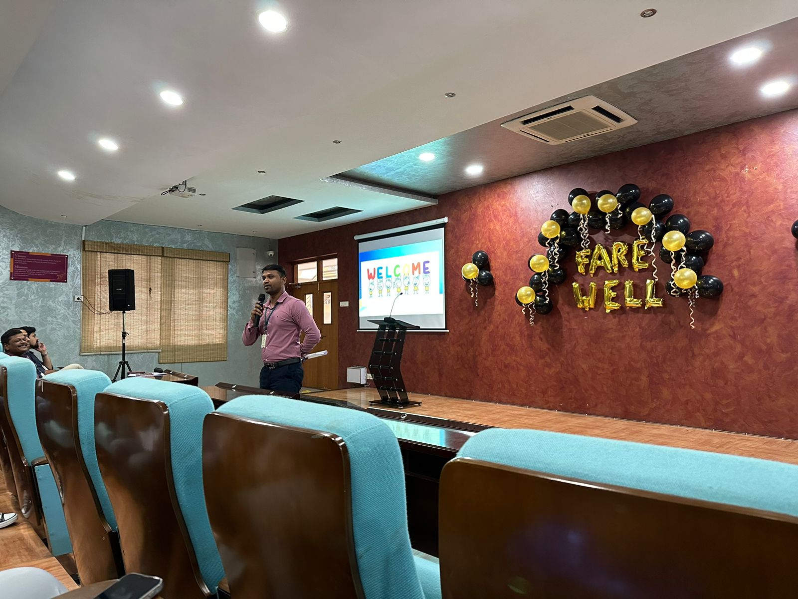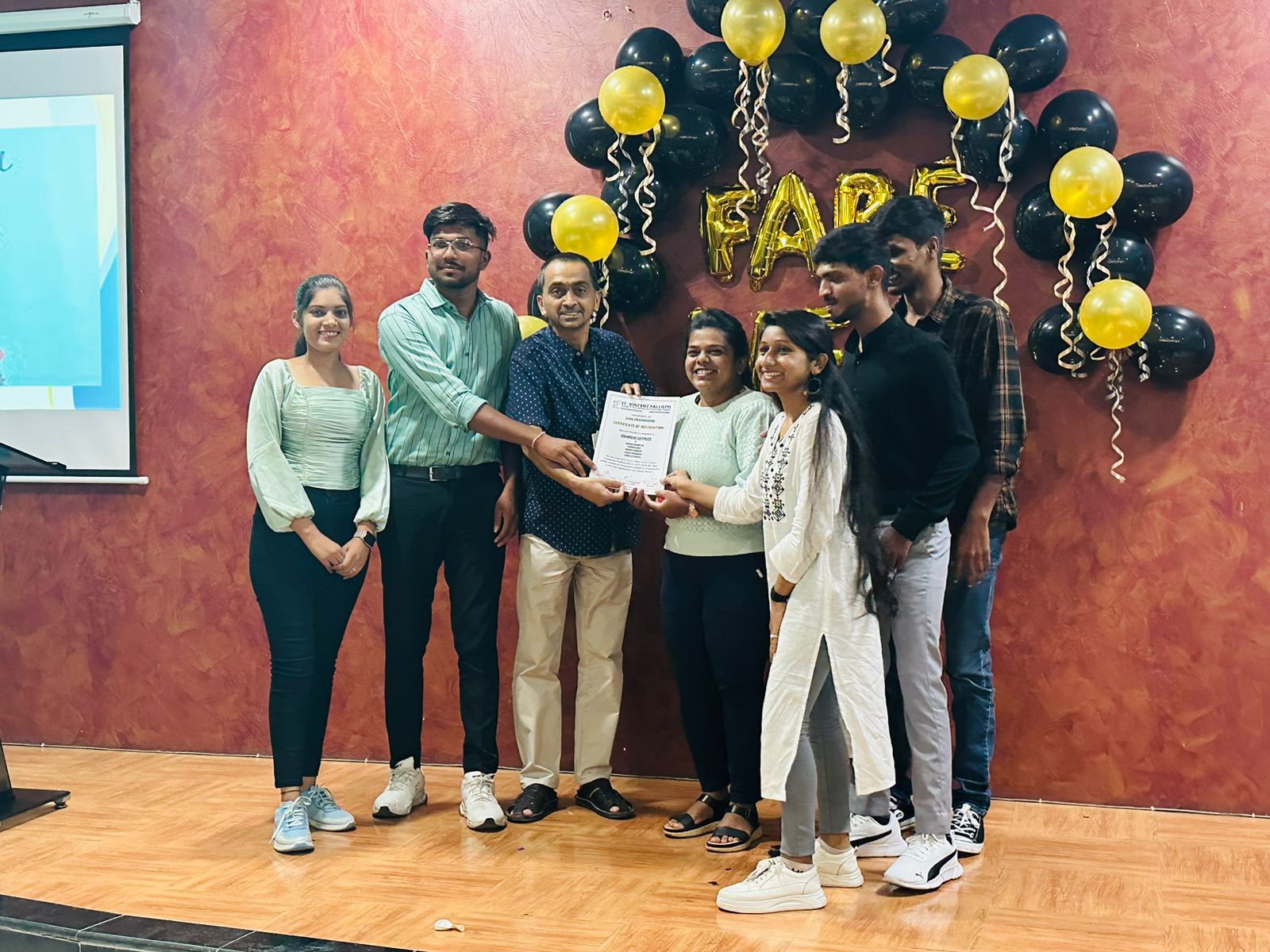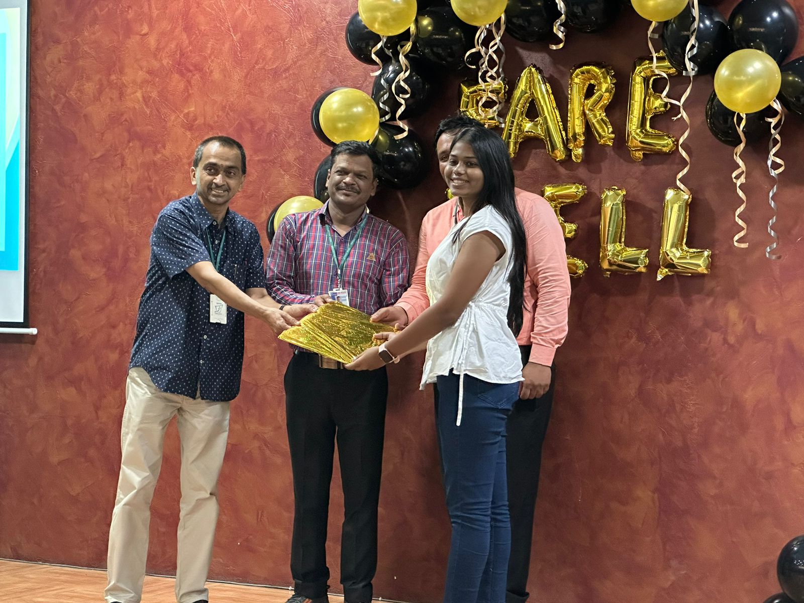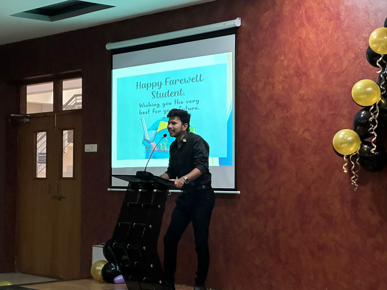 A video presentation showcasing nostalgic moments and the students' journey in the department was played. Fun games were organised for the final-year students, and each of them received a gift as a token of appreciation. Mr. Ayush Thool shared his experiences and expressed gratitude to the department and faculty members for their unwavering support in helping students to achieve their goals.