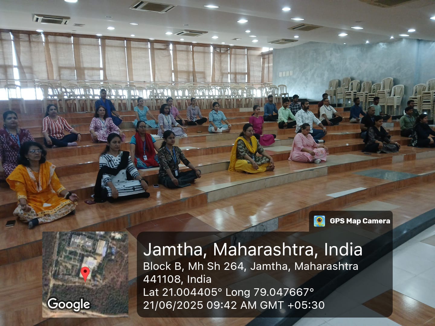 As part of the celebration, a one-hour Yoga session was organized from 9:30 AM to 10:30 AM for teaching, and non-teaching staff members in the college premises. The session was conducted under the guidelines of the Ministry of Youth Affairs & Sports, Government of India.